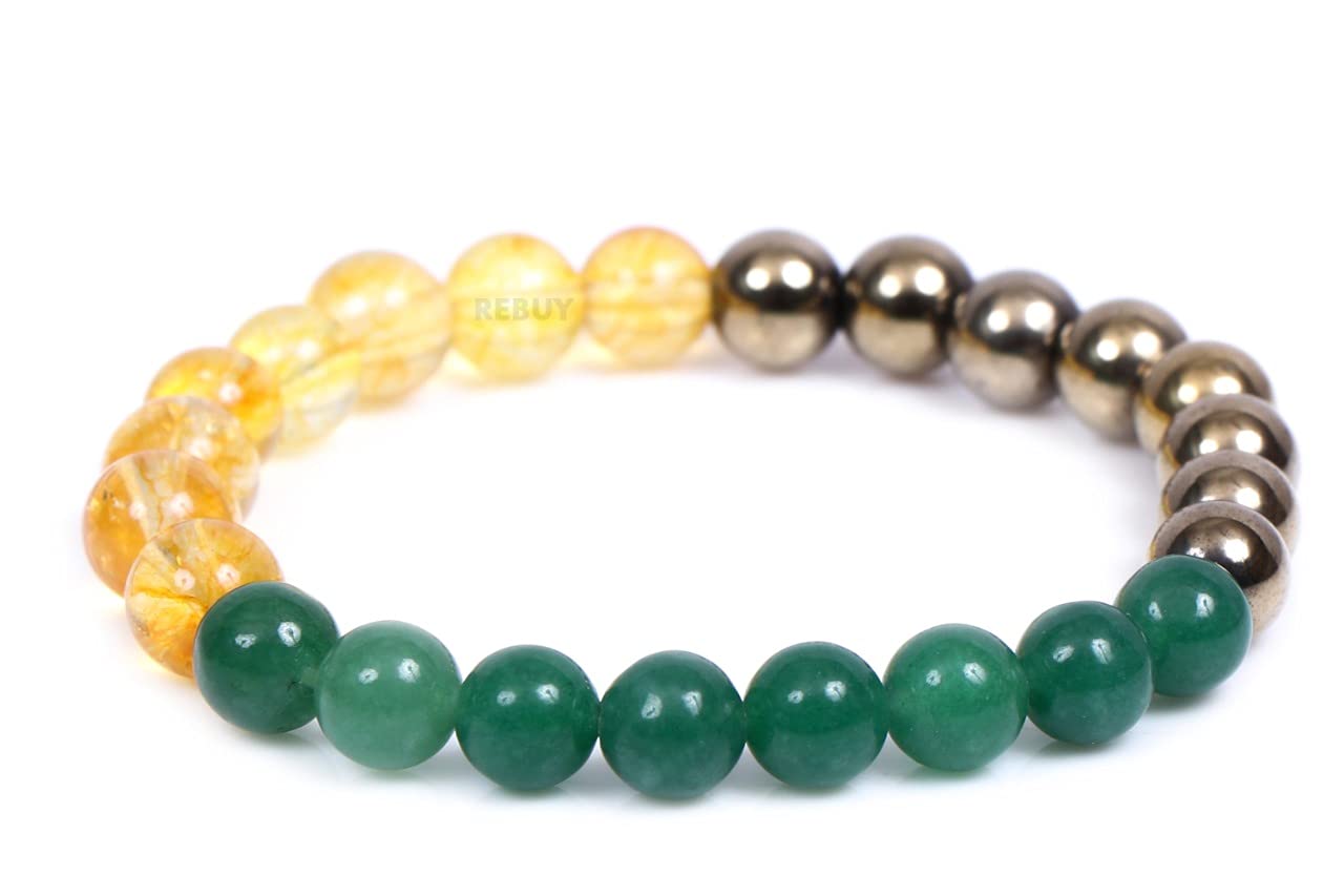 This exquisite multi-coloured Green Jade, Citrine & Pyrite Natural Crystal Healing Bracelet stores 3 energies in a single bracelet, which makes it a very valuable accessory to wear on your wrist.